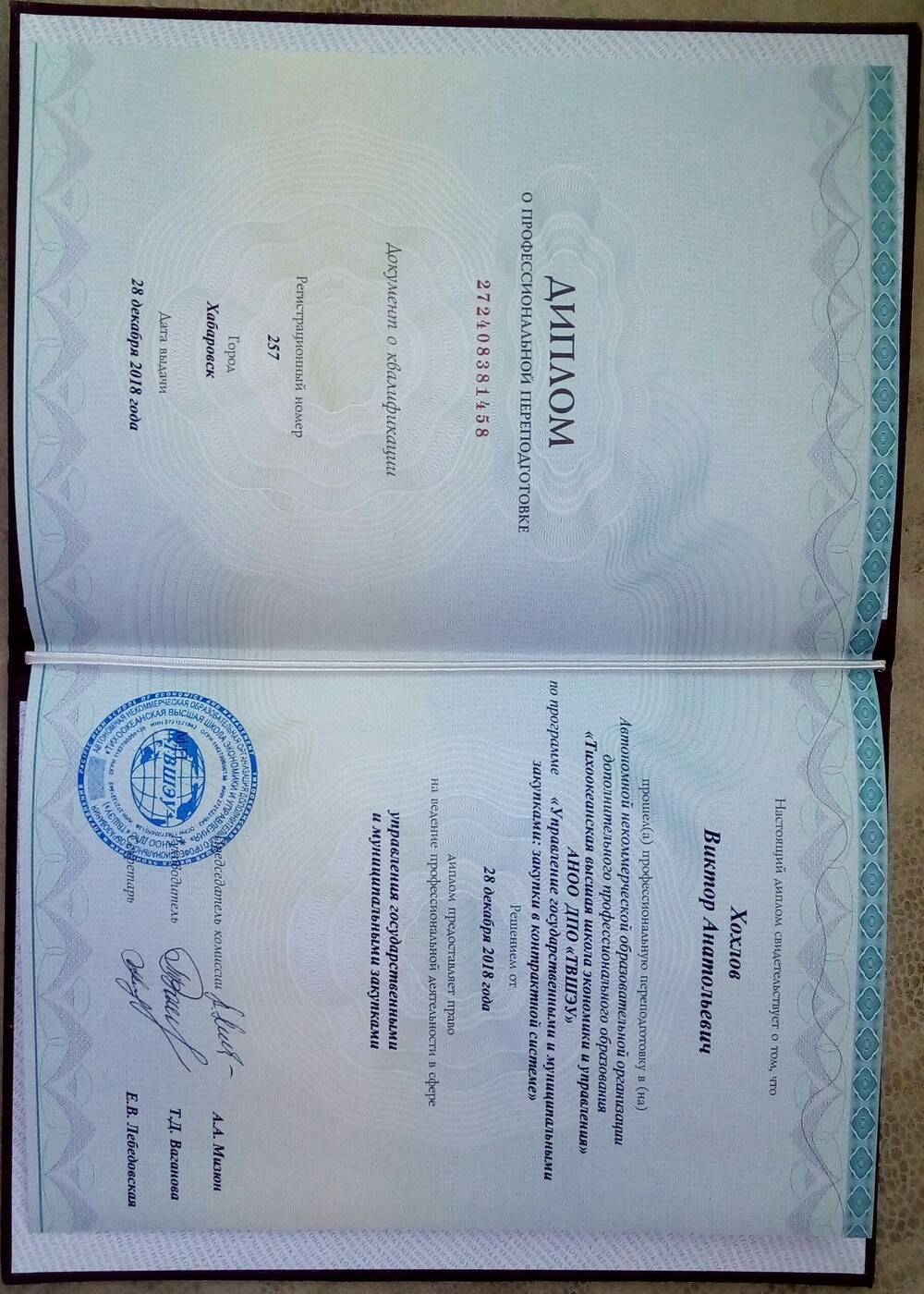 "Тихоокеанская высшая школа экономики и управления" АНОО ДПО "ТВШЭУ"