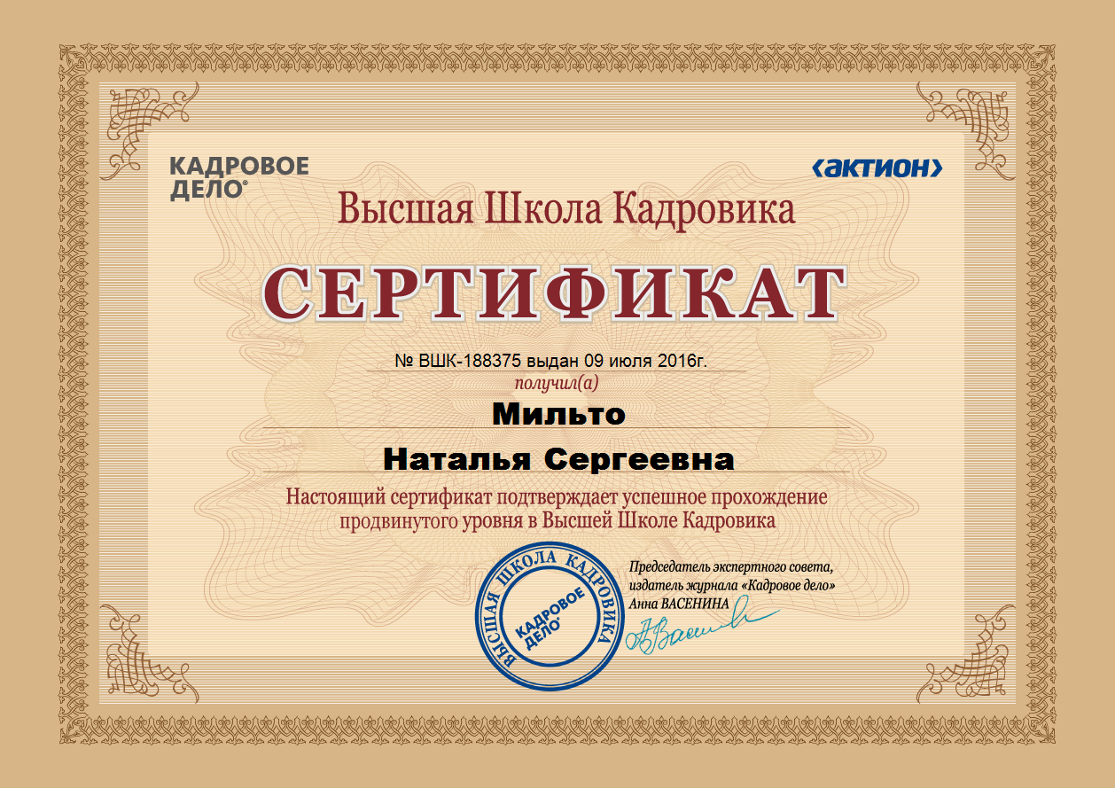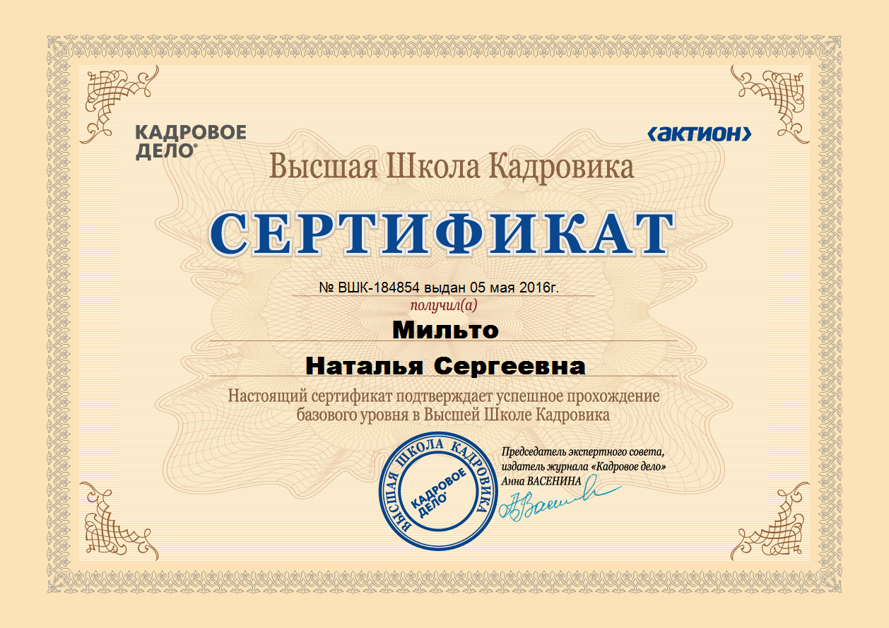 Менеджер по персоналу (подбор и управление персоналом, кадровое делопроизводство»)