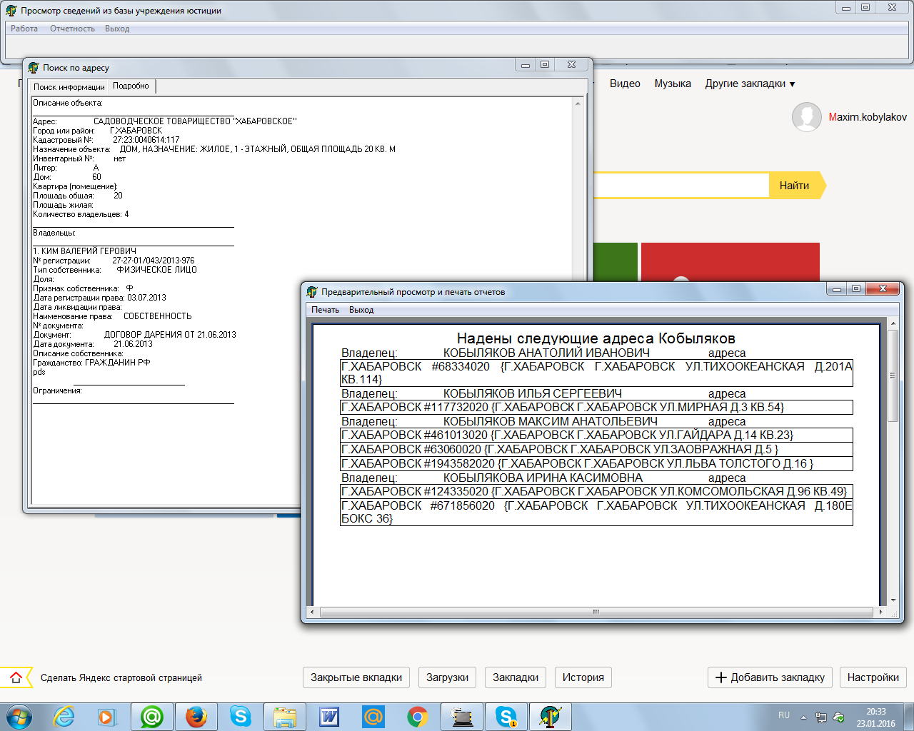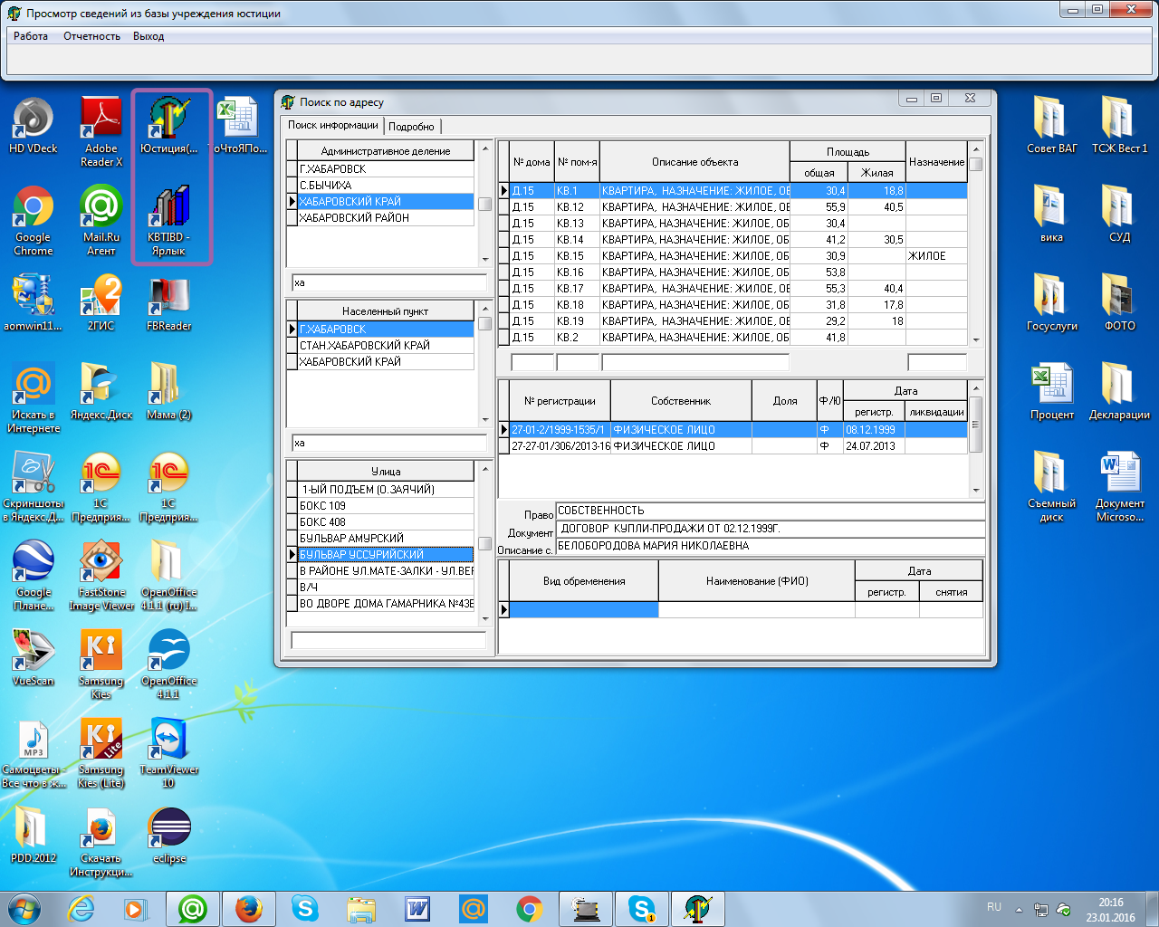 Спроектировал и создал базу данных для статистического учета недвижимости Хабаровского края, оценки ее стоимости для передачи в органы государственной налоговой службы.